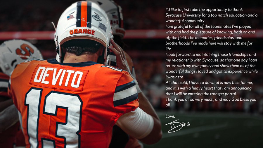 Syracuse Football Tommy Devito Enters The Transfer Portal Troy Nunes Is An Absolute Magician