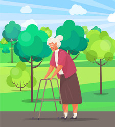 Old Lady Walking With Walker Vector Cartoon Illustration Canstock